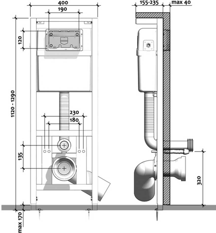 Подвесной унитаз может устанавливаться на инсталляцию, которая входит в комплектацию. Она представляет собой металлическую раму, которая крепится к стене, а на нее навешивается чаша унитаза.