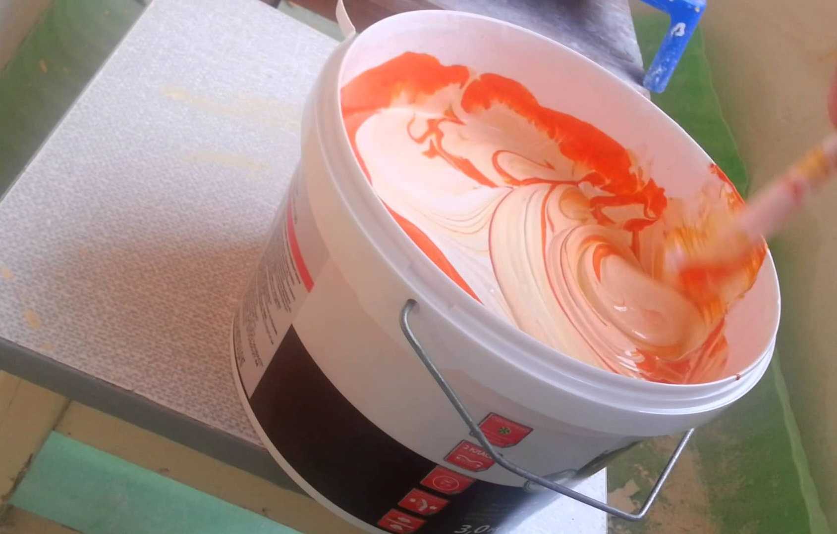 Для создания правильного тона и ровного окрашивания поверхности рекомендуется использовать колеровочную краску. Она создается путем смешивания базового тона, обычно это белый, с красящим составом – колером.