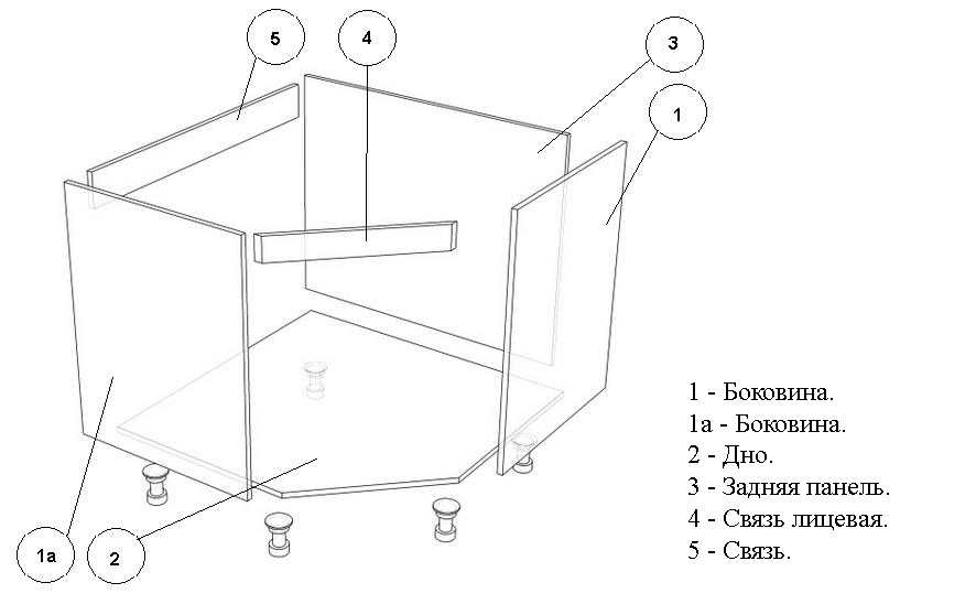 Схема сборки угловой тумбы под раковину.