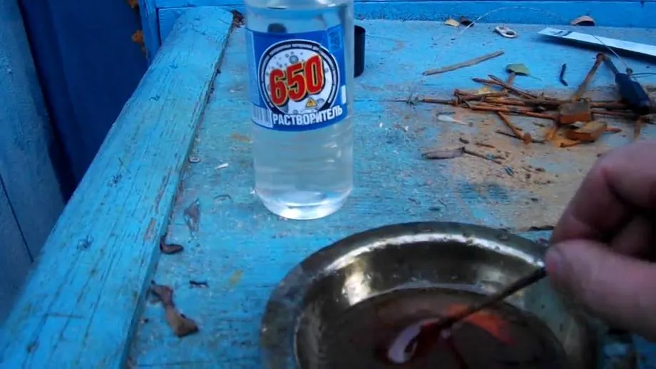 Чтобы убрать ее с одежды или дерева потребуется: 100 грамм бензина, по одной поллитровой бутылки растворителя для масляных красок и уайт-спирита, средство для выведения пятен, ветошь, губка.