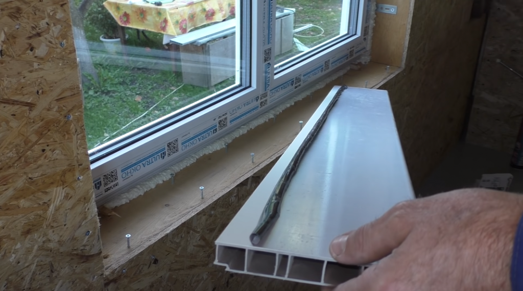 В отличие от монтажной пены — взаимодействие раствора и пластика не очень хорошее и возможно проскальзывание. Чтобы избежать этого имеется один хитрый прием — на внутреннюю сторону подоконника прикручиваются саморезы. Желательно сделать три ряда с расстоянием в 1,5 см. Шляпка саморезов должна выпирать на 1см.