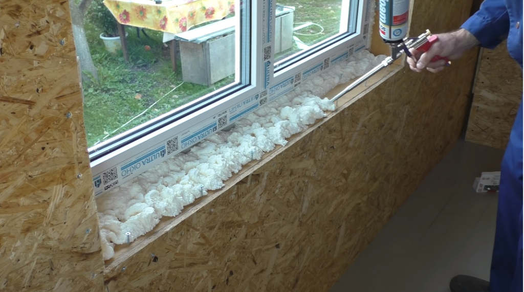 После этой процедуры неизбежно останутся зазоры. Убрать их можно, используя монтажную пену. Пена наносится плотными линиями, чтобы не оставалось пустого пространства. Мелкие зазоры пена закроет сама, так как она при высыхании будет расширяться.
