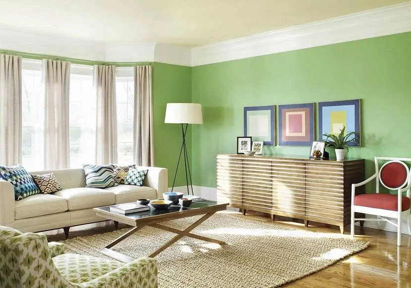 Окрашивание стен фисташковой краской отлично смотрится в современных типах интерьераИсточник dizainvfoto.ru