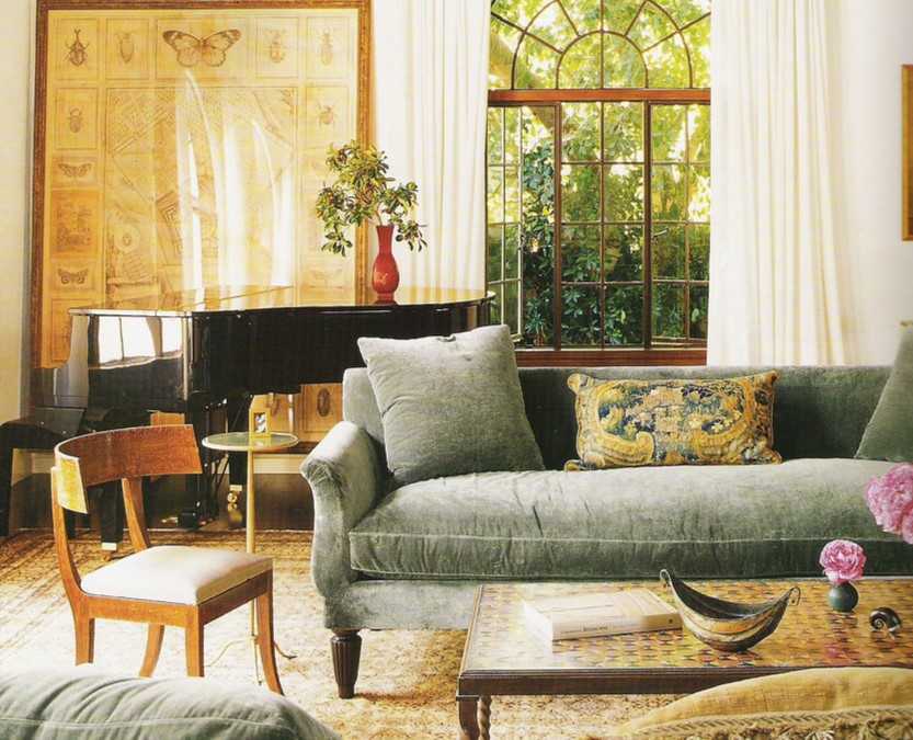 Софа – отличный вариант и для интерьеров в «старину», для борокко или рококо, так как тогда, когда её только завезли в Европу, там главенствовали именно эти стили. Это означает, что спинка и подлокотники у софы могут сливаться, иметь волнообразный изгиб, сама она может быть чуть ли не одноместной, обита бархатом или другой ворсистой тканью, а ножки у неё могут быть резными. В таком случае интерьер комнаты должен быть соответствующий – представьте себе театр восемнадцатого века. В повседневности такую софу увидеть достаточно трудно, как и такую мебель в целом. Всё-таки это отголоски аристократизма.