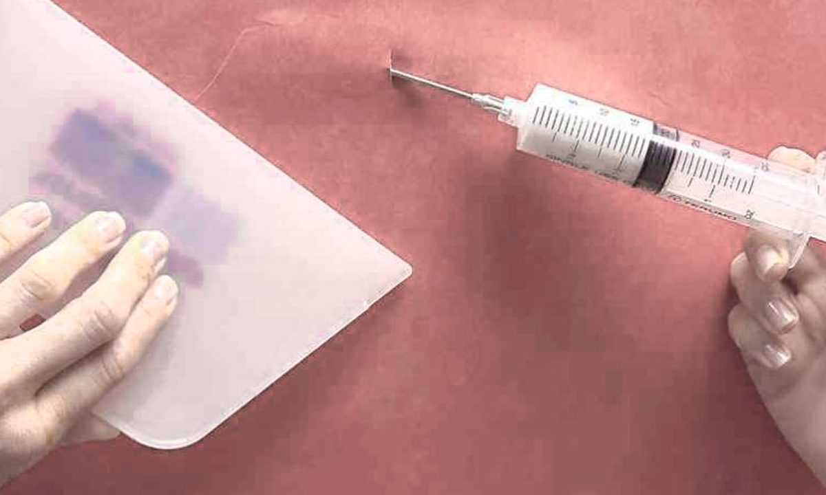 Если в процессе работы под полотном возникают пузыри, то нужно набрать клей в шприц с толстой иглой, проткнуть пузырь, ввести клей и разгладить это место шпателем.