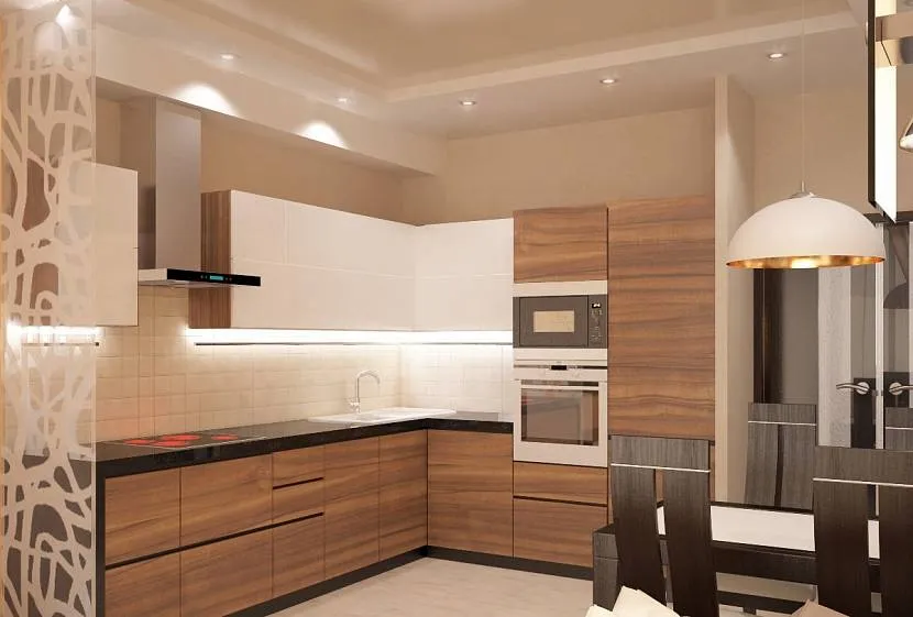 Если размеры помещения позволяют, то можно выбрать шоколадные или кофейные оттенки. Это создаст контраст, благодаря которому кухонное пространство заиграет новыми красками. А широкий ассортимент материалов поможет воплотить в жизнь любые дизайнерские фантазии.