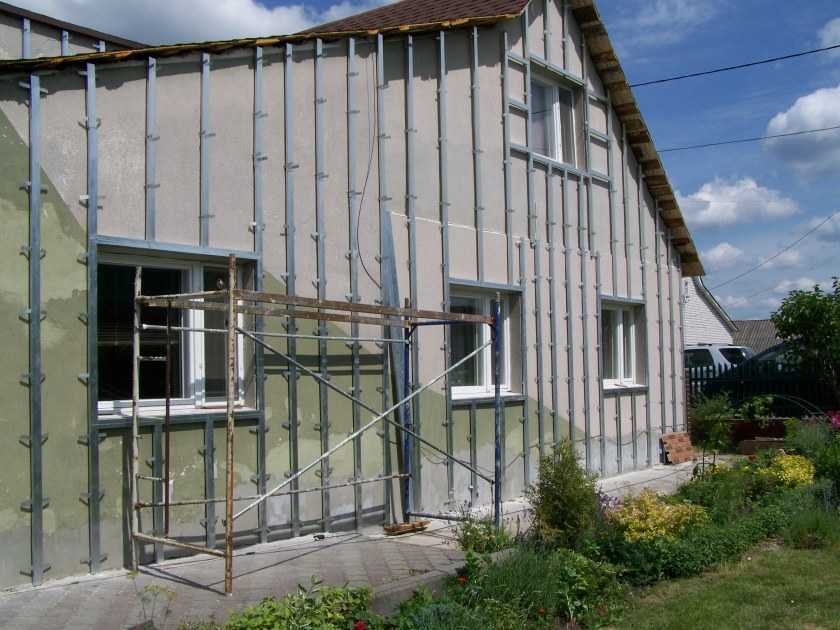 Во время установки обрешетки может быть выполнено наружное утепление стены. В качестве утеплителя выбирается материал с паропроницаемостью выше, чем у материала стен. Этот момент очень важен, иначе на границе двух материалов будет накапливаться вода (конденсат), что рано или поздно вызовет разрушение стены.