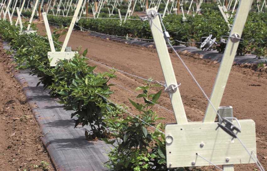 По мере вызревания ягод его поднимают в вертикальное положение. В движение каркас приводит поворотный механизм, зафиксированный рядом с основой, которую можно конструировать по одному из вышеприведённых вариантов. Высота конструкции составляет 3 м, а длина, в зависимости от площади насаждений, может варьироваться от 5–10 м до нескольких километров.