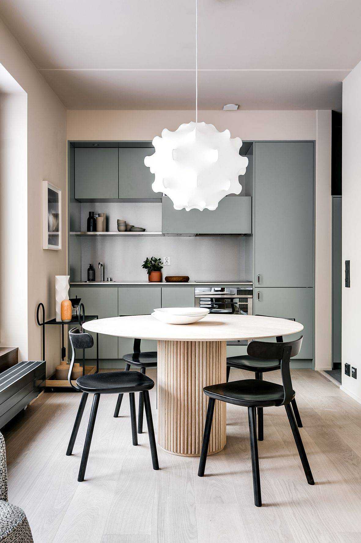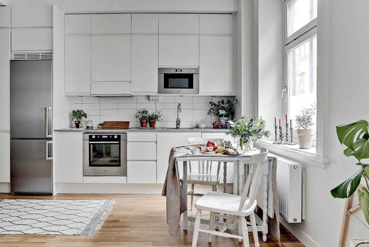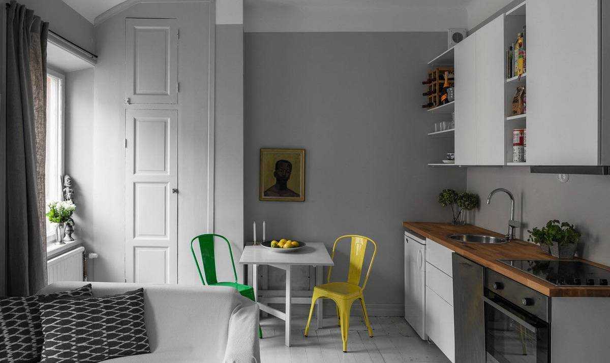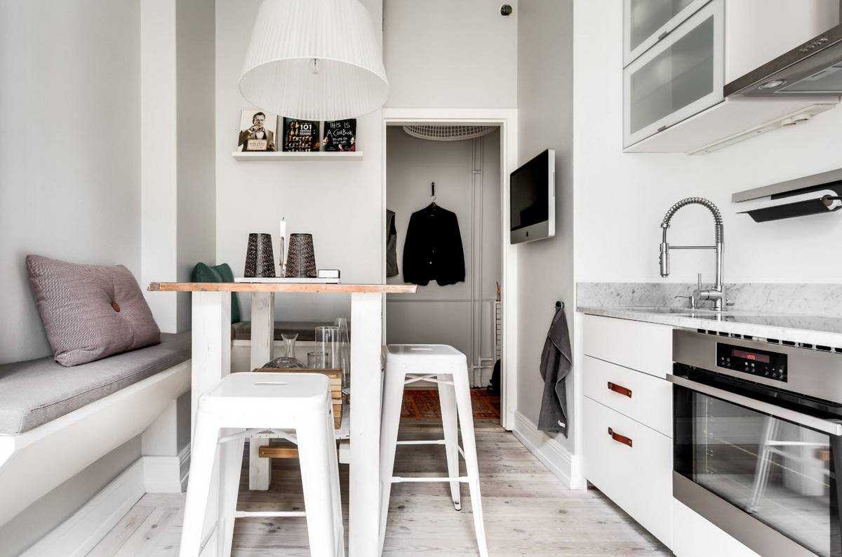 Думаю, в данной ситуации придется пожертвовать удобством в пользу практичности. Табуретки, без сомнения занимают меньше места, чем стулья. Их можно задвинуть под стол, при необходимости компактно сложить одну в другую. Они легче по весу, более мобильны, что немало облегчит вам процесс уборки, которую на кухне необходимо делать гораздо чаще, чем в остальной части квартиры. Если кухня маленькая, то стол, как правило, стоит у стены. Я не раз в гостях облокачивался на эту самую стену, сидя при этом на табурете, — вот такая альтернатива.