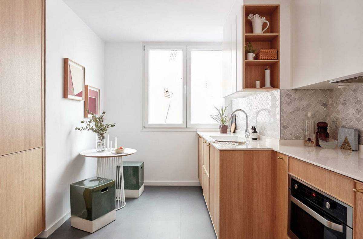 Рационально использовать пространство на небольшой кухне помогут табуреты. Такой вариант мебели может разнообразить обстановку и значительно преобразить интерьер в помещении.
