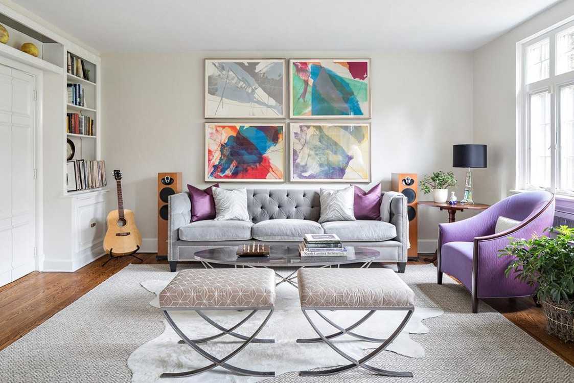 Если у вас большая комната, в которой преобладают светлые оттенки, не бойтесь использовать сочные цвета, которые в сочетании с нейтральными дадут превосходный эффект.