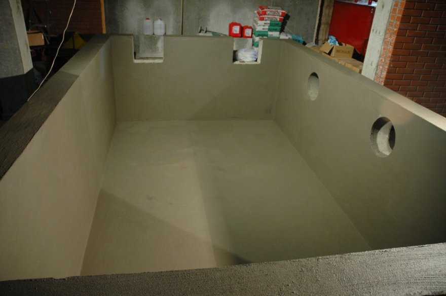 Вообще, чем их больше, тем выше водонепроницаемость покрытия чаши. Тут главное, чтобы была обеспечена максимальная адгезия стяжек, для чего каждая из них, перед нанесением следующей, полностью смачивается водой.