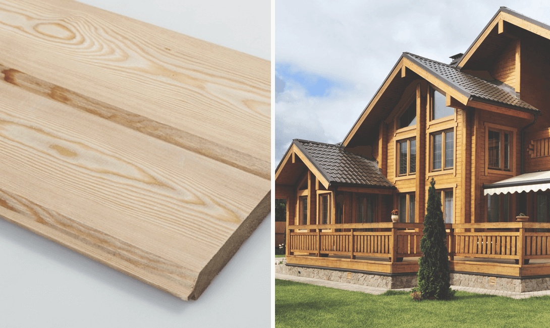 В отличие от кедра, лиственница обладает более отчётливым рисунком, особенно в местах, где располагались ветки и сучки. Из-за этой особенности лиственница больше подходит для отделки в деревенском и классическом стиле. Этот материал нередко применяют для отделки фасада в качестве имитации бруса. Для этих целей подходит и кедр, но он дороже лиственницы. Этот материал имеет следующие преимущества:
