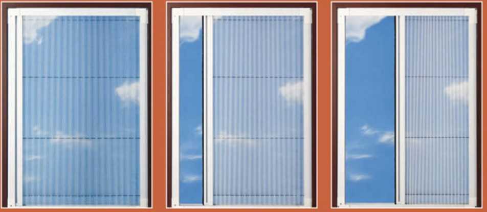 Роллетные москитные сетки отодвигаются снизу вверх на окнах и в правую или левую сторону на дверях.