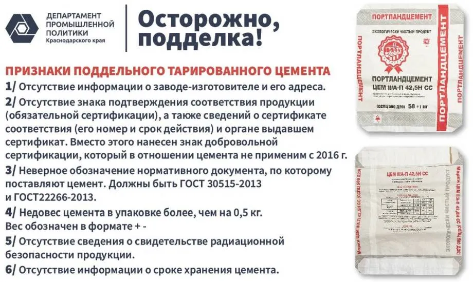 Для обозначения марки цемента по прочности используется аббревиатура ПЦ или М. К примеру, маркировка в виде М400, нанесенная на упаковку, обозначает, что он способен выдержать давление до 400 кг/см3. Кроме того, на ней может содержаться информация о наличии добавок в общей массе вещества, обозначаемая буквой Д и их количеством в процентах.