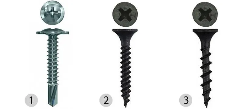 Для работы с гипсокартонными конструкциями применяются три группы крепежных элементов с различной резьбой.