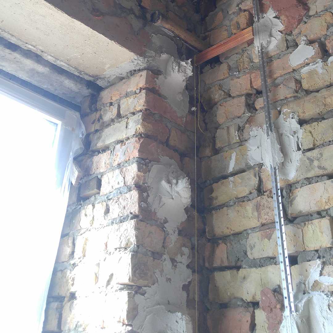При этом заделка прилегающих к углу частей стены может осуществляется правилом с использованием угольника и обязательной опорой на два и более маяка.